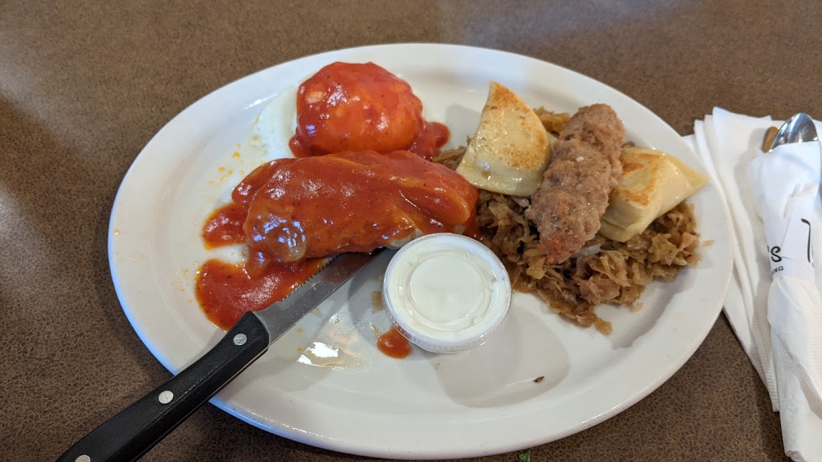 Food was real good. I got the polish trio. It was all incredible, the city chicken, and the stuffed cabbage was all great. Food came real fast and our waitress was awesome. I can't remember her name but she had dark hair.